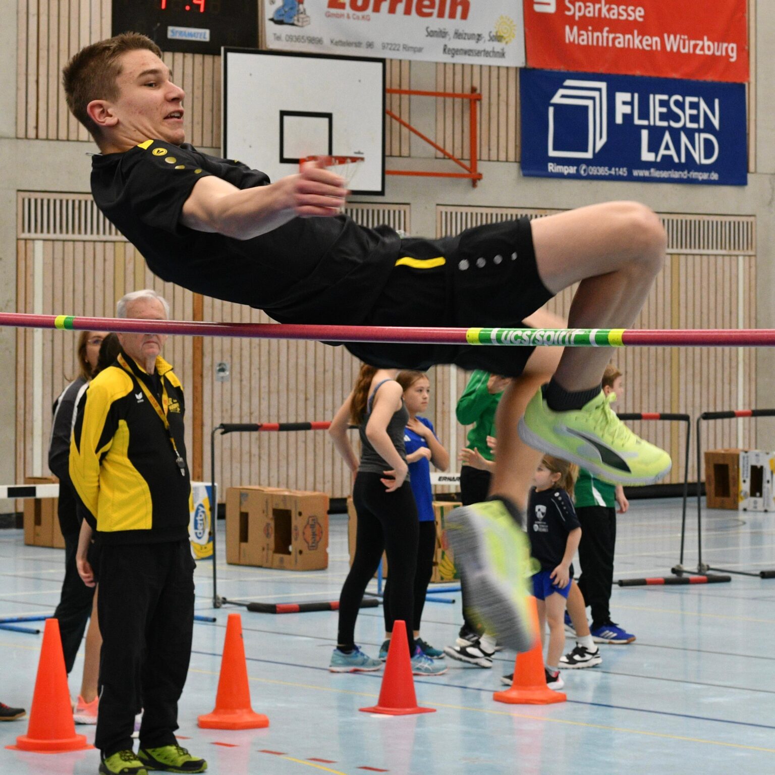Nicht wegzudenken ist das Rimperer Leichtathletik-Hallensportfest, das nun zum 38. Mal stattfand. Von 159 gemeldeten Sportlern/innen aus neun Vereinen traten 143 an. Güntersleben, Burggrumbach, Gerbrunn und Höchberg reisten mit ganz großer Mannschaftsstärke an. Da gleichzeitig auch die Diözesan-Meisterschaften ausgetragen wurden, waren neben der gastgebenden DJK Rimpar auch die DJK-Vereine aus Schweinfurt und Schwarzenau am Start.