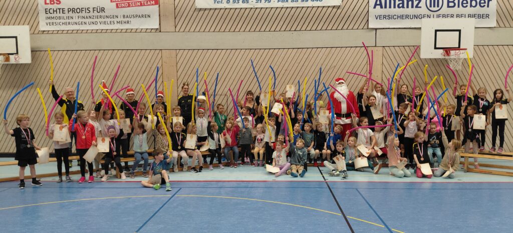 In den Dezember-Trainingsstunden der Kinderleichtathletik ging es richtig zur Sache: Rund 60 hochmotivierte Kinder stürzten sich mit viel Energie in einen abwechslungsreichen Vierkampf aus 35-Meter-Hindernissprint, Zielweitsprung und Heulerweitwurf und krönten das Ganze mit einem mitreißenden Staffellauf, der die Halle zum Toben brachte.
